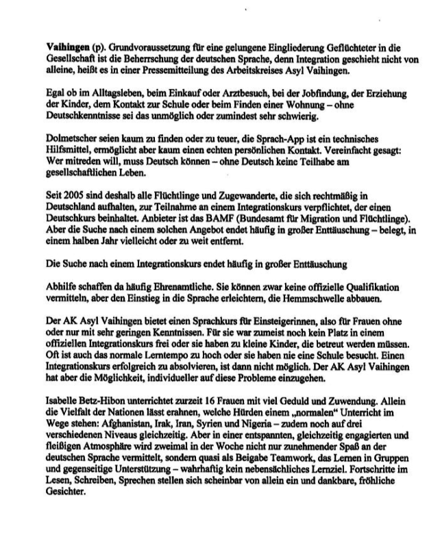 Weil er speziell auf Frauen zugeschnitten ist, die keine oder nur geringe Deutschkenntnisse haben und aus vielfältigen Gründen nicht an offiziellen Kursen teilnehmen können. Zudem kümmert man sich sehr intensiv um die individuelle Situation - deshalb diesen!