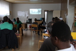 Andere Flüchtlinge nutzten die Gelegenheit, das Angebot des AK Asyl zu diesem Thema näher zu erkunden. An zwei Nachmittagen in der Woche Deutsch zu lernen und zu Hause weiter arbeiten zu können, erschien ihnen offensichtlich so attraktiv, dass sie sich gleich anmeldeten – auch wenn klar wurde, dass es kein offizieller Sprachkurs mit Erwerb eines Zertifikats sein kann. Der anschließend angebotene Film über die Situation von Flüchtlingen in Deutschland, den eine Vabo-Klasse (Berufsvorbereitung für Jugendliche ohne Deutschkenntnisse) gedreht hatte, schilderte zwar eindrucksvoll deren Erfahrungen und Erfolge, aber auch Enttäuschungen – leider aber nur für das deutschsprachige Publikum, da er ohne Untertitel produziert war, so der Arbeitskreis in einer Mitteilung.