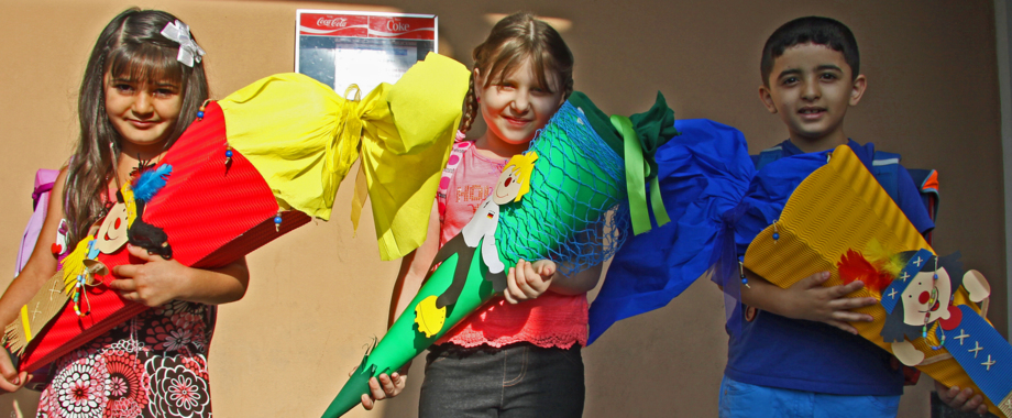 So wurden auch drei syrische Kinder in die Vaihinger Schlossbergschule eingeschult, begleitet von ihren Eltern und den Paten des AK Asyl. Diese haben den Familien bei Fragen zur Seite gestanden und Vorbereitungen mit ihnen gemeinsam in Angriff genommen. Es wurden Hefte gekauft, Stifte, Malsachen und mehr. Und natürlich durften auch ein paar Süßigkeiten und das eine oder andere Stofftier in der Schultüte nicht fehlen. „Schultüte – das kannte man nun wirklich nicht und die Augen waren entsprechend groß. Gespannt wurde die Aufnahmefeier verfolgt und die guten Ratschläge aufgenommen – zumindest von den Kindern, denn die meisten Eltern verstanden sie natürlich nicht“, berichtet der Arbeitskreis. Aber auch dafür sind die Paten da, es zu erklären, Regeln näher zu bringen und bei der Umsetzung zu unterstützen, heißt es weiter. Am Ende zeigt sich dann ganz schnell, dass bei einer Einschulung das gleiche gilt wie überall: Kinder lernen unglaublich schnell, nehmen Dinge begierig auf und passen sich an. „Beim Verlassen der Stadthalle hätte niemand mehr die Frage beantworten können, welches Kind aus Syrien kommt und welches aus Deutschland“, schreibt der AK.